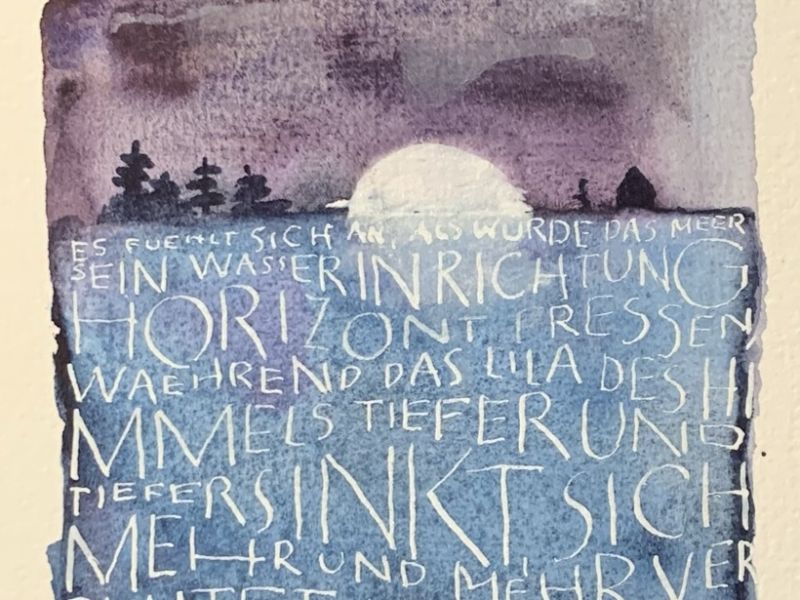 In diesem Kurs wird die Antiqua vermittelt, die früher für den Buchdruck verwendet wurde, gut lesbar ist und heute noch immer fast unverändert benutzt wird. Die Formen werden wir zuerst mit dem Fineliner üben, dann mit dem Bleistift weiterfahren. Der Druckaufbau bzw. -abbau ist hier wesentliches Element und nicht ganz einfach. Zum Schluss wird das Ganze mit der Spitzfeder umgesetzt – die schwerste Übung dieses Kurses, da hier zusätzlich auf Federhaltung und Befüllung der Feder geachtet werden muss. Anhand von "Schnipseln" wollen wir mit Worten spielen, wegnehmen und hinzufügen und einen eigenen lyrischen Text zaubern, denn wir dann mit der gelernten Schrift gestalten werden Die Materialliste finden Sie HIER. Die Kosten für Layout und Diverses, 5€, werden vor Ort mit der Kursleiterin abgerechnet.