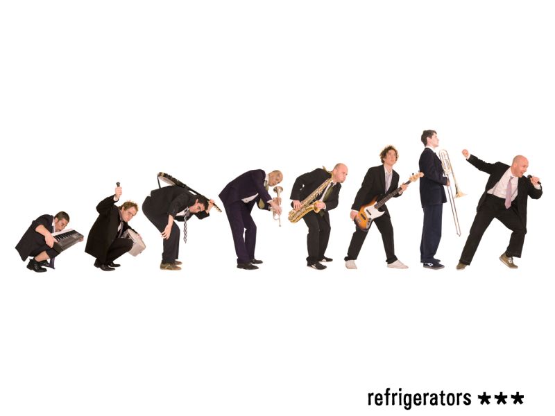 Die coolste Band der Welt spielt Ska. Und das nicht ohne Grund. Denn Ska ist Party Musik schlechthin - vor allem dann, wenn dieser mit Rock`n` Roll, Beat, Reggae und ein wenig Hip-Hop gemischt wird! Die 8 Herren in den schwarzen Anzügen liefern ihre Ska-Melange so gnadenlos ab, dass früher oder später alles hüpft und schreit. Vorne, Hinten, Mädels, Jungs, Bedienungen, Mischer: Alle! Schuld daran waren: 4 mal Groove, 3 fette Bläser und 1 durchgeknallter Sänger. Die REFRIGERATORS kamen, sahen und skaten!