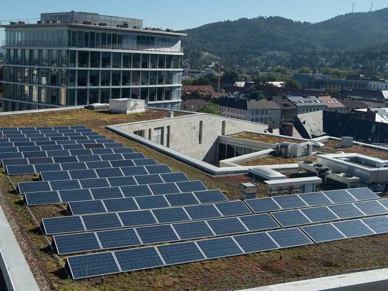 Im Anschluss erhalten Sie nützliche Informationen zum Freiburger Förderprogramm Klimafreundlich Wohnen, im Rahmen dessen auch PV-Volldachbelegungen gefördert werden.