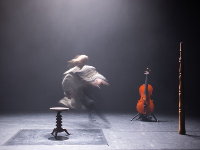 In einem luziden Traum aus Klang, Bewegung und rotierenden Objekten begibt sich ein Cellist auf