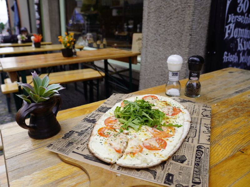 Breisgauer Flammkuchen steht für ofenfrische Flammkuchen mit vielfältigen Belägen – traditionell mit Speck und Zwiebeln, vegetarisch mit Gemüse oder süß mit Apfel und Zimt. Die Speisekarte kombiniert elsässische Klassiker mit modernen Interpretationen und reicht von Flammburgern über Pasta bis hin zu frischen Salaten und Pizzen. Die offene Zubereitung sorgt für Einblick ins Handwerk, während das gemütliche Ambiente zum Verweilen einlädt. Hier trifft regionale Qualität auf kreative Vielfalt – ein beliebter Treffpunkt für Liebhaber der herzhaften Küche.