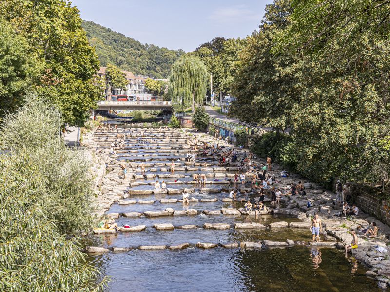 FischtreppeIm Sommer 2019 entstand Unterhalb der Freiburger Schwabentorbrücke eine neue Fischtreppe. Die Riesenrampe soll Fischen fortan helfen, die Dreisam bis ins Dreisamtal besser zu durchqueren.Autor: FWTM GmbH & Co. KG