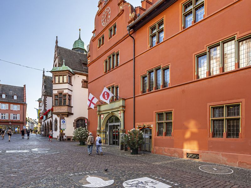 In den historischen Gemäuern des Alten Rathaus befindet sich heute die Tourist Information. Gerne stehen wir Ihnen hier für Fragen zur Verfügung, versorgen Sie mit einem Stadtplan und Broschüren oder informieren Sie über Veranstaltungen in Freiburg während Ihres Aufenthaltes. Kommen Sie gerne herein! Die auffällige, sandsteinrote Fassade wird Ihnen den Weg zu uns weisen.