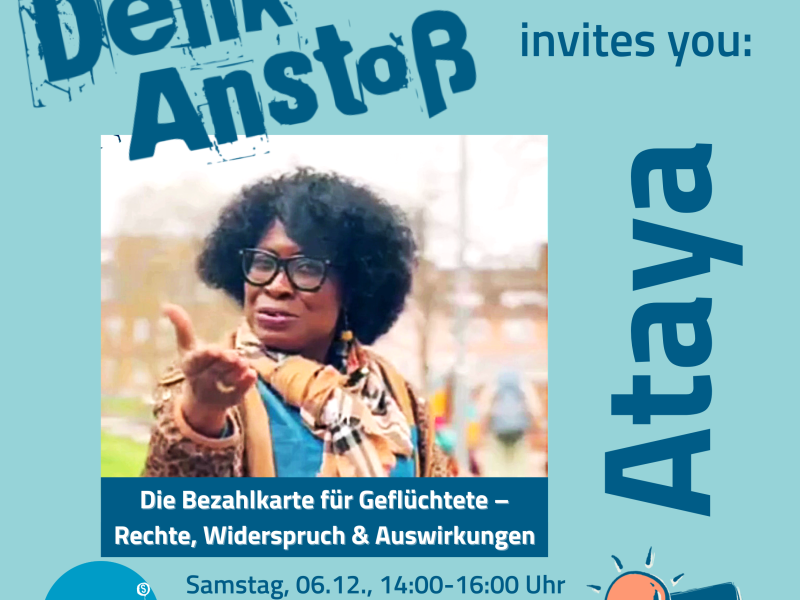 As part of the "Ataya" series, there will be a discussion event with representatives of the "Bezahlkarte stoppen" initiative. The focus will be on