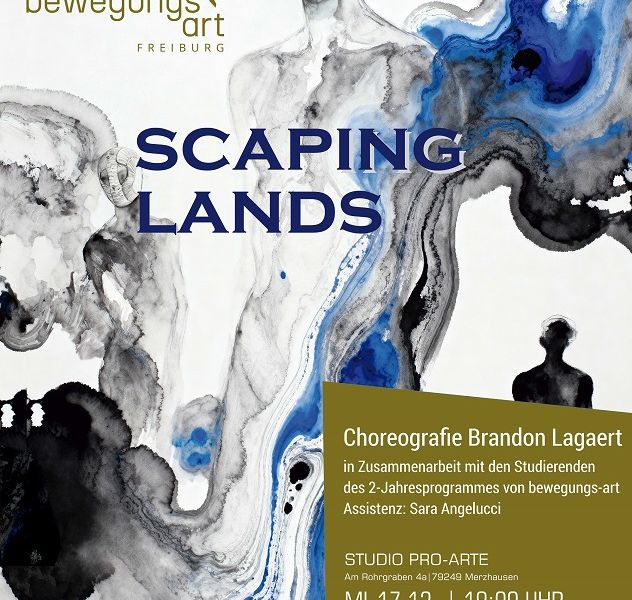 Twenty international young dancers from the two-year training class of bewegungs-art freiburg e.V. present the stage piece "SCAPING LANDS - The Aesthetics of Ambiguity". Under the artistic direction of Belgian choreographer Brandon Lagaert and the choreographic assistance of Sarah Angelucci, the students learn choreographic methods and practise presenting on stage before completing their training as dancers a few months later.