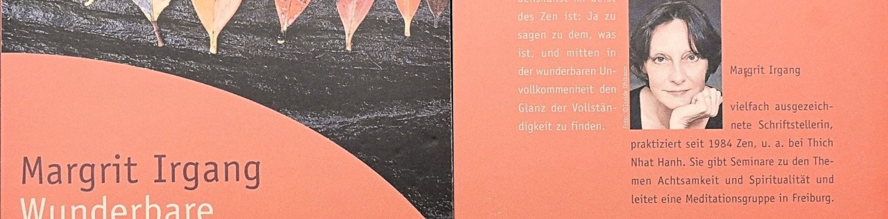 Course leader: Irgang, Margrit. Margrit Irgang is a writer and meditation teacher. She has practiced Zen since 1984, from 1992 until his death with Thich Nhat Hanh, gives meditation seminars at home and abroad and is the author of "Leuchtende Stille", "Wunderbare Unvollkommenheit", "Dieser Augenblick" (all Herder), among others.