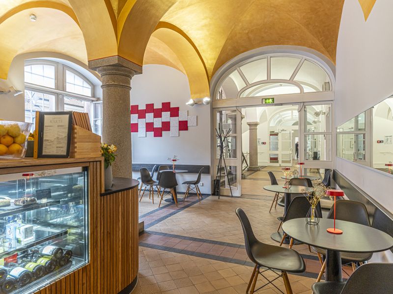 Cafe im Museum für neue Kunst Coffee and cake are served in the vaulted room of the museum café, as well as a small selection of dishes. There is also a garden in summer. Author: FWTM GmbH & Co. KG