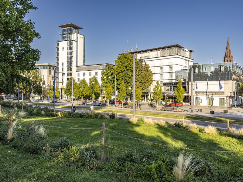 In the heart of Freiburg's old town, the five-star Hotel Colombi offers its guests 110 tastefully luxurious rooms and suites as well as a spa with fitness room, sauna and steam bath and a circular indoor swimming pool under a glass dome roof.