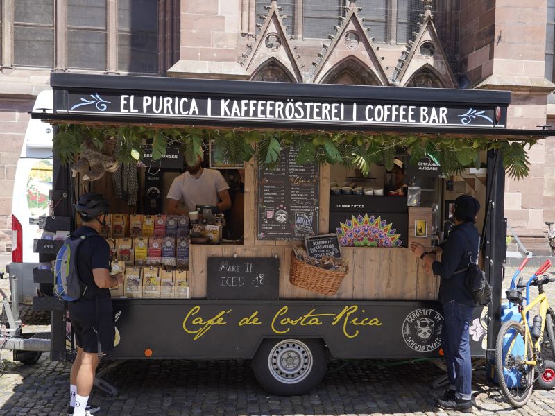 Costa Rican specialty coffee: direct, sustainable drum roasting on site in Pfaffenweiler - fresh, high-quality and fairly traded at the Freiburg Münstermarkt (cathedral market).