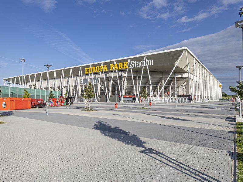 The Europa-Park stadium, the new home of SC Freiburg, impresses with its modern architecture and offers space for 34,700 spectators. With steep stands, direct access to public transport and an extensive capacity of parking spaces for cars and bicycles, the stadium represents a step into the future of the club.