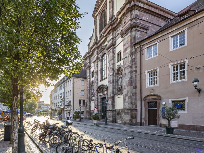 Built between 1683 and 1701 for the Freiburg Jesuit College, the church initially belonged to the religious order. A few years after the dissolution of the Jesuit order, in 1793, the church and its auxiliary buildings such as the Old University became the property of the Albert-Ludwigs-Universität.