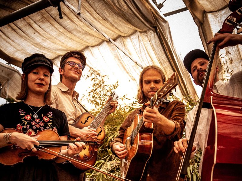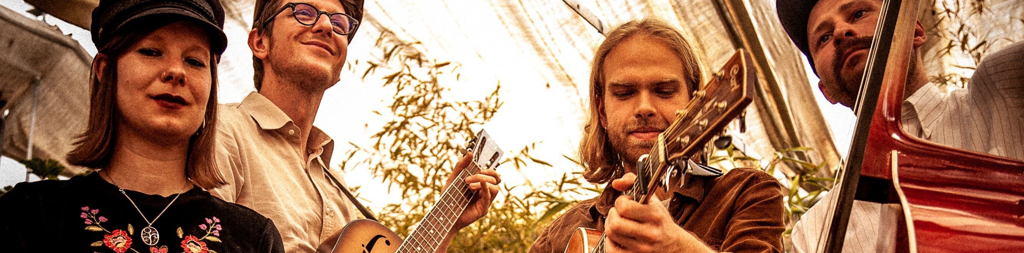 The See See Riders est un jeune quatuor qui se consacre à l'American Roots Music. Avec leur violon, leur contrebasse et leurs guitares à résonateur, ils vous emmènent dans une expédition musicale. Celle-ci ne les mènera pas seulement à travers les terres boueuses du fleuve Mississippi, où des musiciens comme Charley Patton ont autrefois façonné le blues, mais aussi à la Nouvelle-Orléans, en Caroline du Sud, et à Louisville, dans le Kentucky, où le ragtime, le swing et les jug bands ont marqué la roots music. Les jeunes musiciens incarnent ainsi une grande diversité qui, intégrée dans des arrangements modernes, rend néanmoins justice aux racines. La voix caractéristique et la guitare swinguante d'Armano Persau sont complétées par les lignes de basse groovy de Stephan Goldbach, qui font bouger tous les pieds, le violon virtuose de Bekki Wagner à la Clifford Hayes ainsi que le jeu de slide chantant de Benjamin Lojak, semblable au style de Tampa Red, pour former une image sonore exceptionnelle. Le chant polyphonique complète les morceaux et leur confère un caractère folk chaleureux.