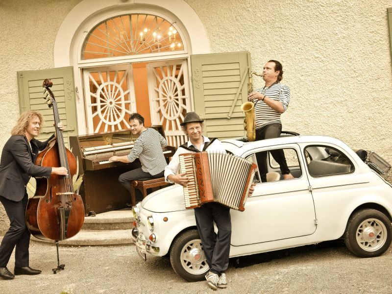 Avec l'accordéoniste Andreas Hinterseher, au jeu extravagant, et le pianiste Chris Gall, qui brille par sa richesse d'idées, ils vivent leur musique ici et maintenant. Cela rappelle les quatre garçons qui parcouraient les places et les foires du sud de la ville en jouant joyeusement. C'est ce qui s'est passé aux débuts de Quadro Nuevo.