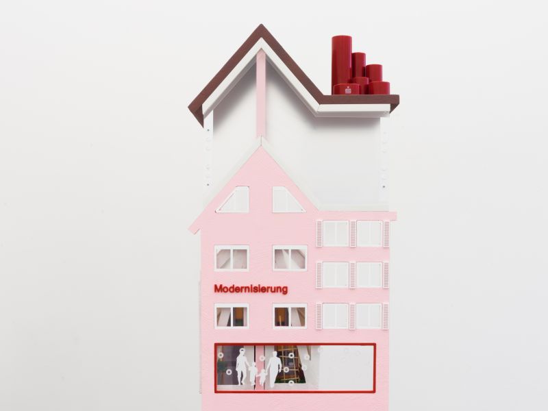 En partant des maisons individuelles et des reliefs de façades des caisses d’épargne, Karla Zipfel examine ces surfaces de l’espace public qui deviennent des symboles du désir collectif de prospérité ainsi que de valeurs telles que le travail, l’épargne et la sécurité sociale.
