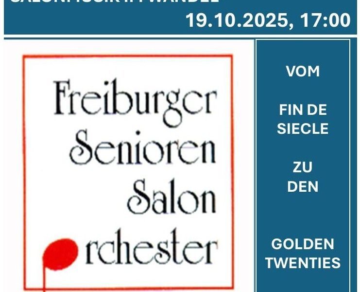 Réserver des billetsDepuis quelque temps, le Freiburger Senioren SalonOrchester FSSO propose régulièrement des concerts de différents domaines de la musique de salon dans la Herdermer Aula des Weiherhofschulen. La musique de salon s'est développée au début du 19e siècle en tant que réponse bourgeoise aux concerts de cour. "Salonmusik im Wandel : Vom Fin de Siècle zu den Golden Twenties" veut montrer quels changements marquants ont eu lieu parallèlement aux ruptures sociales et politiques autour de l'année 1914, y compris dans la musique : de la sensibilité décadente de la musique romantique tardive à l'opéra révolutionnaire des Trois Grâces.