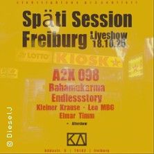 Späti Session Fribourg20357 à 79102... Le 18 octobre 2025, les rappeurs hambourgeois d'adoption Endlessstory, accompagnés de Bahamakarma, feront revivre en live leur späti habituel, le Kiosk 62, dans leur pays d'origine. Tous leurs amis sont invités à la session, entre autres A2X 098 (Fribourg), Kleiner Krause (Fribourg) et bien d'autres.