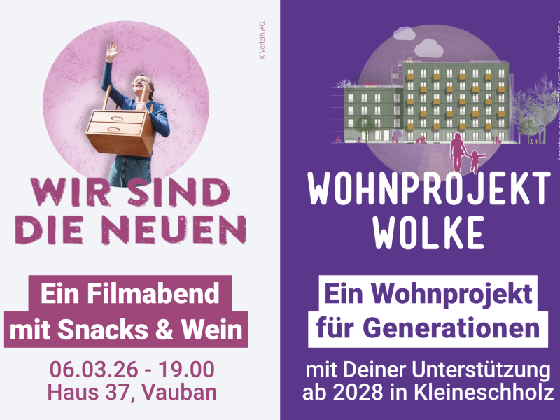 Le projet d'habitat Wolke est une communauté multicolore et intergénérationnelle qui crée dans le nouveau quartier de Kleineschholz des logements permanents, abordables et invendables pour 70 personnes. Notre objectif : un foyer inclusif, durable et solidaire pour toutes les étapes de la vie.