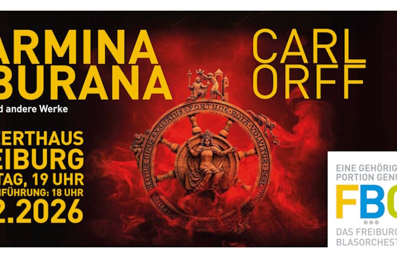 With "Carmina Burana", the Freiburg Wind Orchestra is once again realizing a special project in the Konzerthaus (concert hall) Freiburg. Together with the Freiburg University Choir and the lower school choir of the St. Sebastian College in Stegen, the orchestra unleashes Carl Orff's work of the century. Anyone thinking of timpani and rattles will be surprised! Orff set medieval poems to music, some of which are tongue-in-cheek and quite pithy. The soloist parts are performed by Alice Fuder, Malte Kebschull and Eduard Wagner.